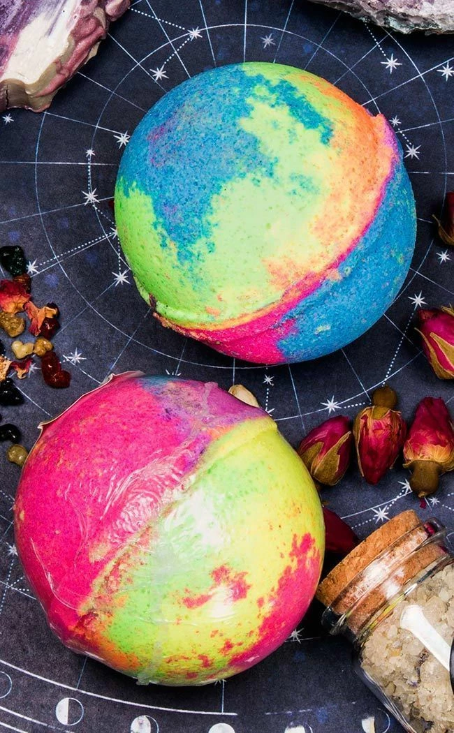 These bombs are insane in the membrane! Just for the fun of it. Bright rainbow swirling colours like hallucinations in your bath and scentedΒ like Skittles!Β Smells just like the candy! Can you SMELL the rainbow? A blend of fruity sugar and citrus.