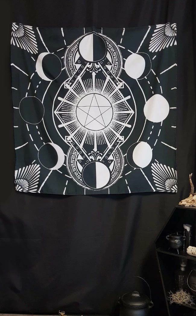 This can be used as a large altar cloth – ready to fit your entire seasonal altars atop it, or you can hang it on the wall, or use as a decorative throw.Â