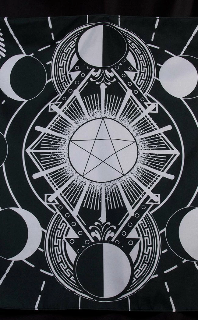 Featuring the moon phases, decorative patterns, and with a pentagram on the inside that you can choose to display pointed up or down depending upon your preference.Â