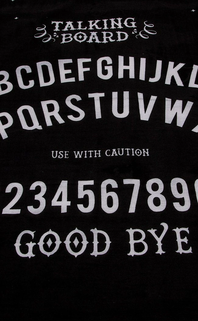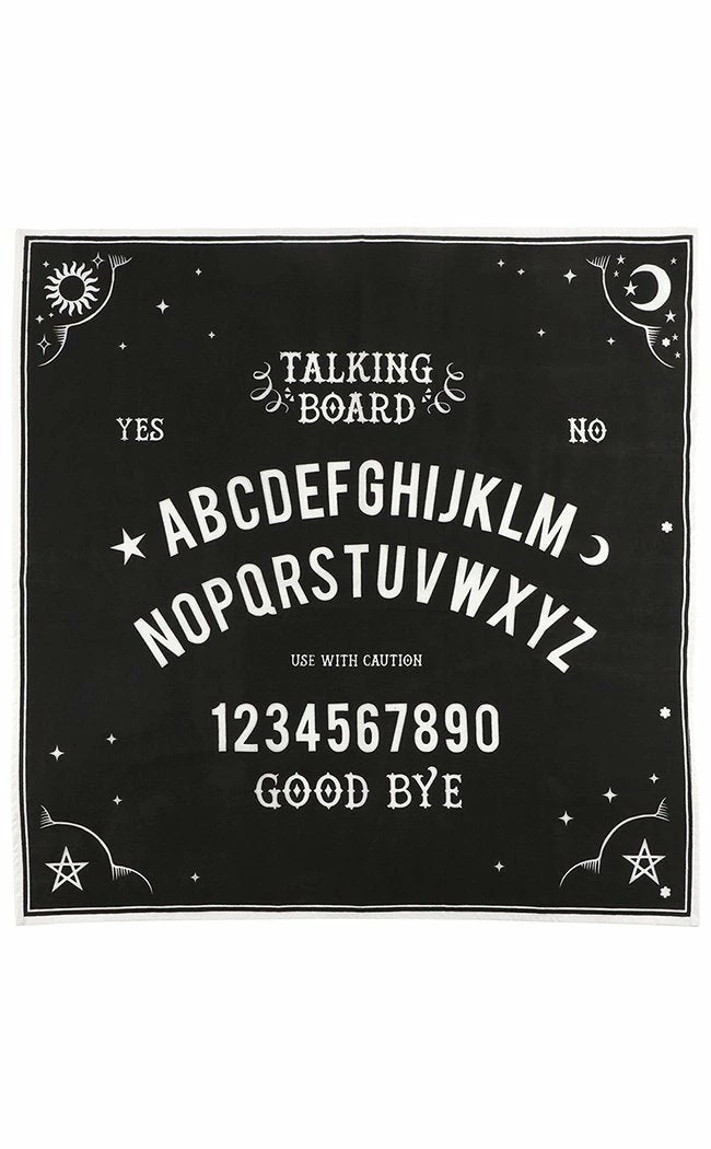Printed as a full spirit board, this cotton altar cloth also features delicate art of the sun and moon as well as pentagrams in the corners along with stars peppered around the letters. Perfect for draping across your altar for display or protecting wood, or you could even hang it as a tapestry.