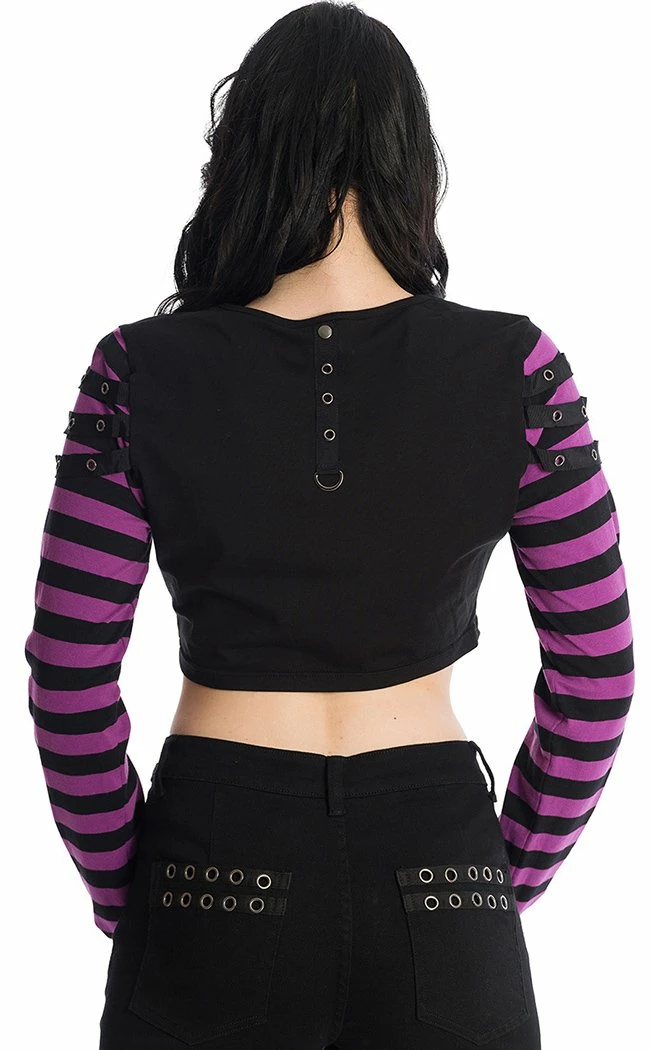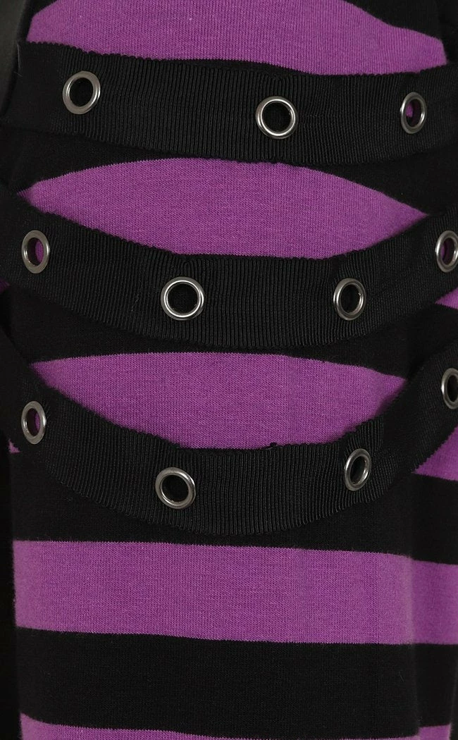 Kit out in bondage trims with the Lycoris Top!Β The cropped chest and back are blocked out in black while the sleeves feature contrasting bright stripes.Β The sleeves slip over the hands with thumbholes and have eyelet straps on the shoulder for an extra pink touch. These straps match the eyelets deets on the hem and back, which also hold D rings that can hold extra bondage straps or chains if you wanna accessorise to the max.