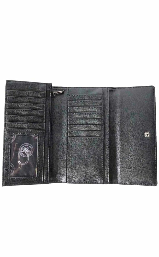 Go out for the night accompanied by one of her beloved creatures.Β This wallet has plenty of space for all of your cards and cash, withΒ 14Β card pocketsΒ including a windowedΒ slot for ID.Β Suede and faux leather come together for a super wearable look.