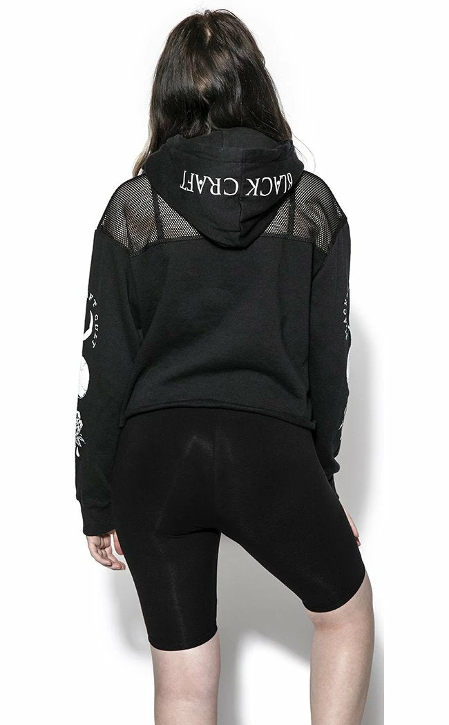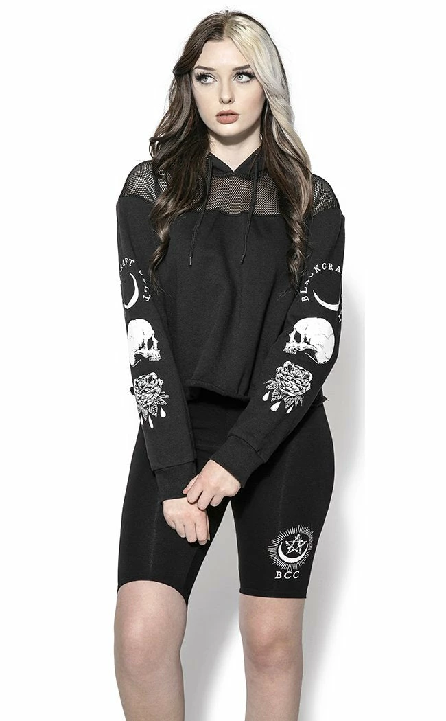 These shorts feature a print a crescent moon pentagram on the left thigh.