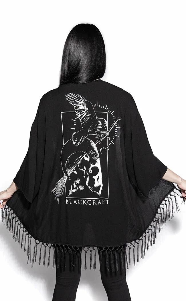 The Dead Remains Kimono is the ultimate finishing touch to any wicked outfit! The oversized fit creates a unique shape, a white contrasting print sitting proudly on the back while final touch of a crochet trim makes this easy to dress up or down.