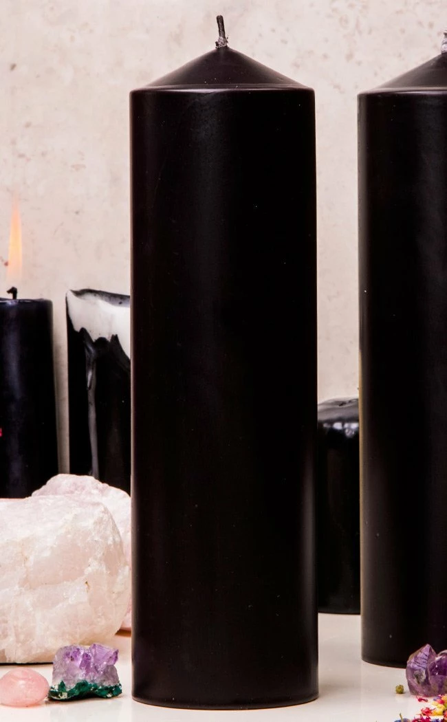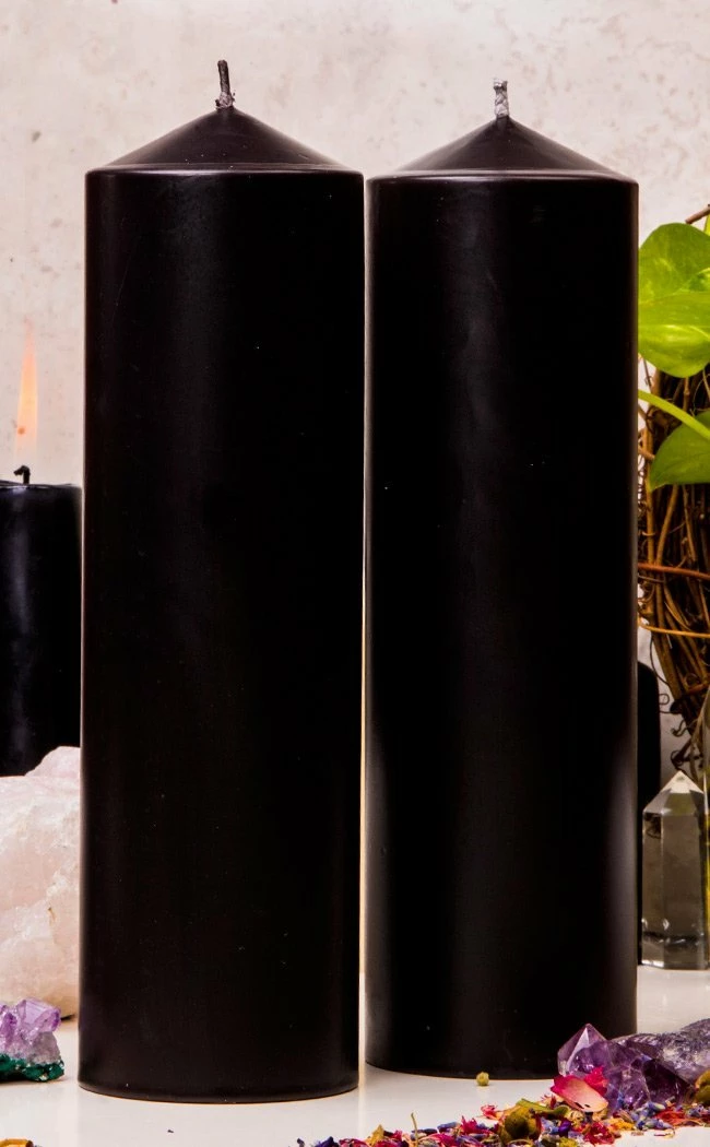 These are the largest black pillar candles you will find. They measure 25cm xΒ 7.4cm wide!Β Perfect for ritual, altar work or just ambiance. These are unscented so you can anoint with your own essences and oils. Other colours and sizes sold separately.Β