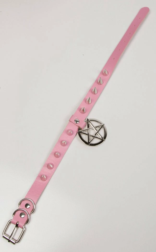 Shredded with spikes, this choker marks out the fiercest of felines with an inverted pentagram charm.
