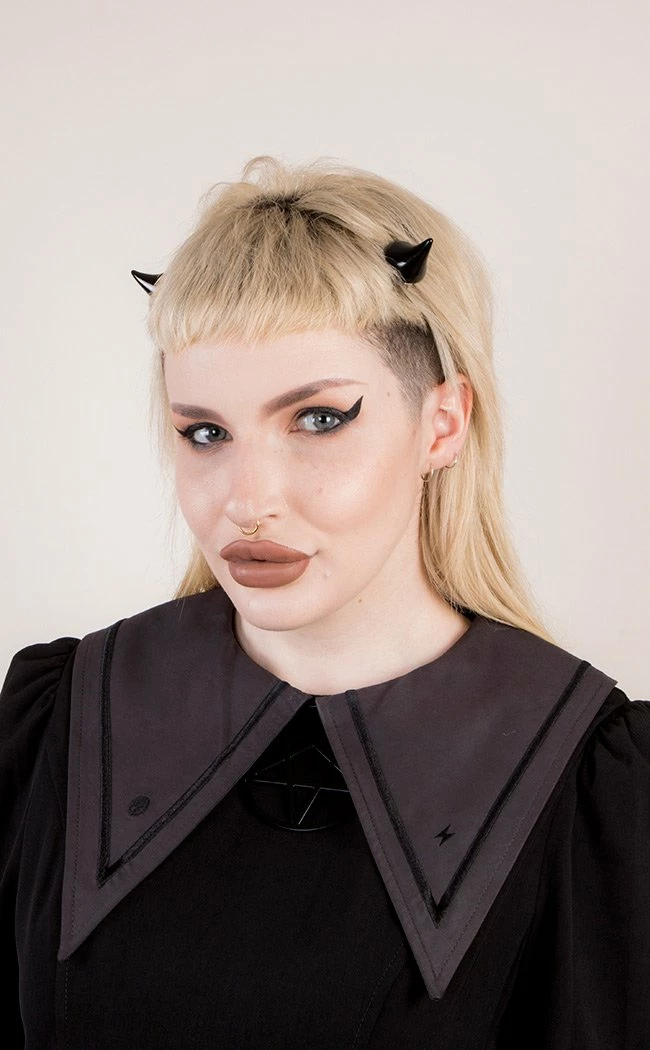 These impossibly cute horns clip straight into your ‘do whether you’re dressing your hair up or down.Β They’re a super quick and easy way to demon up your look for costumes, Halloween or brunch with Nanna.