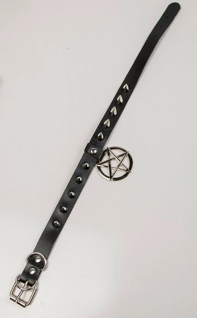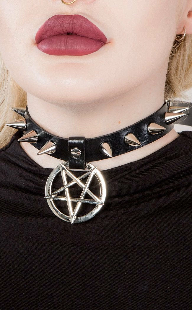 Shredded with spikes, this choker marks out the fiercest of felines with an inverted pentagram charm.