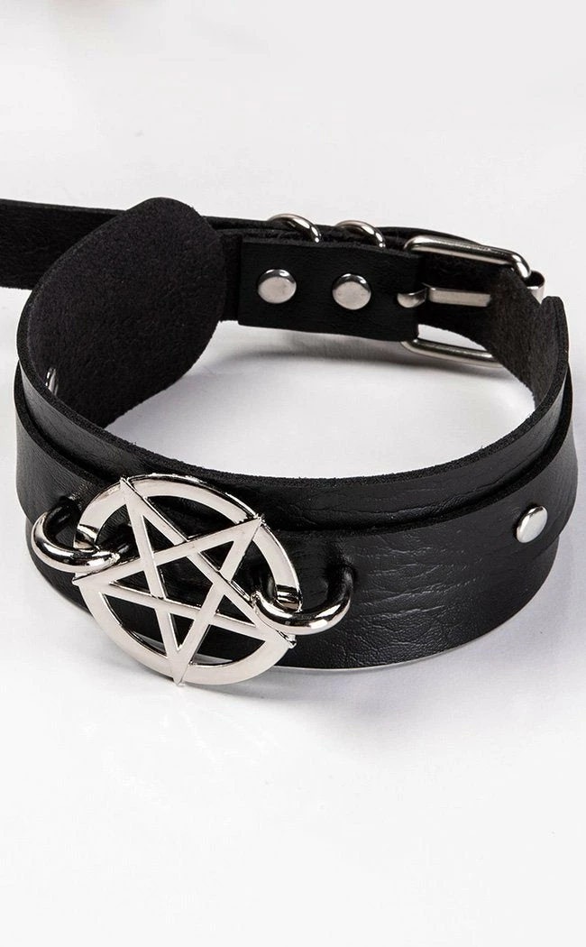 Get yer kicks in this chunky statement piece!Β ThisΒ choker features a thick band of vegan leather topped with a thinner layer, decked out with fat studs and a chunky pentagram charm.