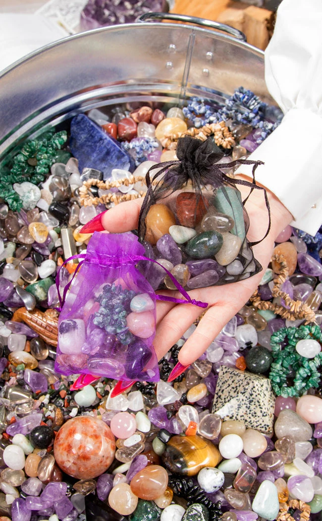 We have collected these crystals over a long period of time for this event, saved special items and collected many different tumbles, shapes, and stones and now poured them all together into a tub for you to purchase by the scoop. There’s even a chance for you to collect rare and expensive crystals! The larger the scoop, the bigger the chance to grab these unique pieces.