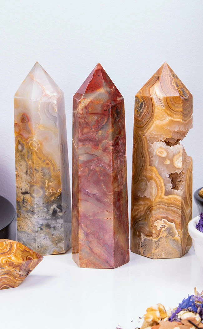 Crazy lace agate inspires happiness, emitting a lovable energy that brightens the room and inspires feelings of warmth as well as support for our emotional wellbeing, allowing us to look at the glass half full.