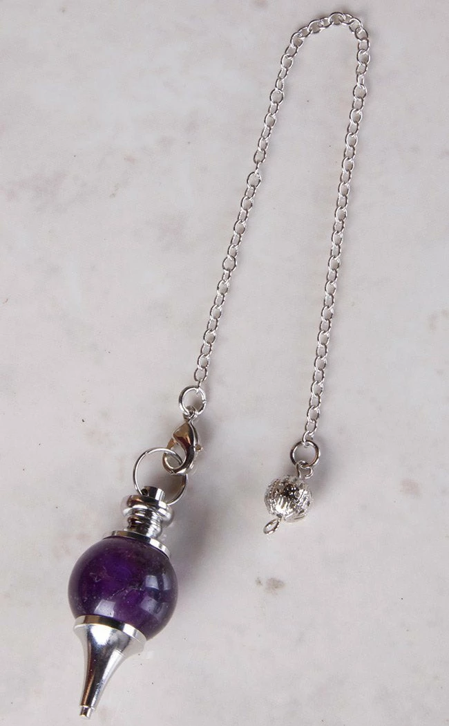 Pendulum is amethyst on a gorgeous silver chain.Â