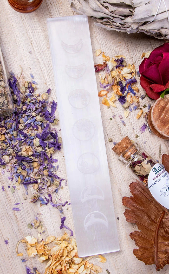 This charging plate is etched with the phases of the moon, making it ideal for cleansing crystals under the moonlight.