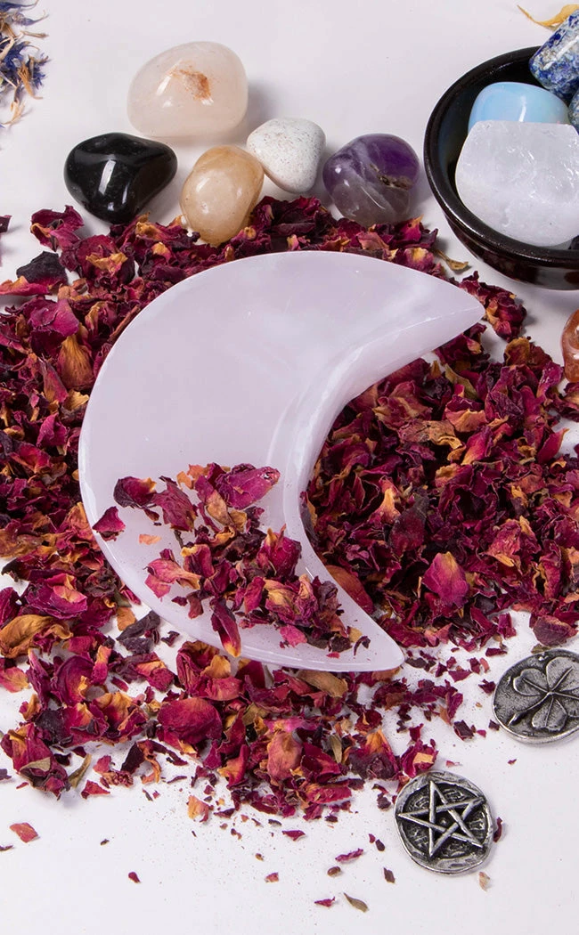 This plate is shaped like a crescent moon, whose shape intensifies its healing energy to cleanse smaller crystals.
