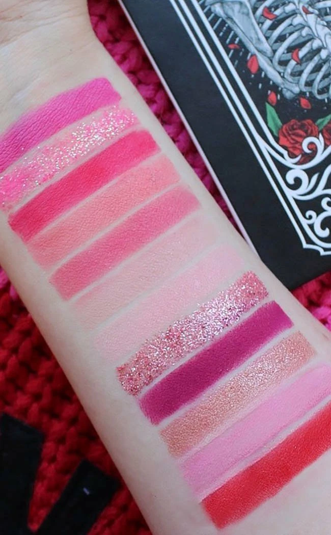 This palette is a wide range of shades that lust can inspire from bold pinks to sultry neutrals.Β The shades are a mix of strongly pigmented matte, shimmer and glitter formulas that apply buttery smooth and soft: