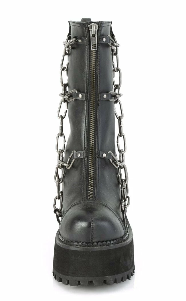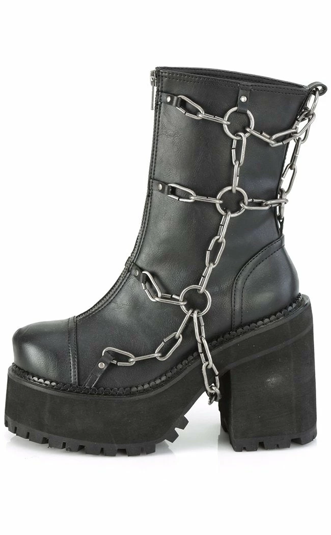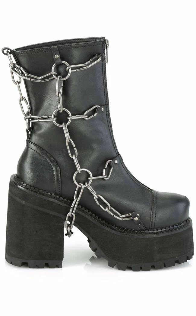 The ultimate biker boots!Β A harness of chunky chains and o rings flank these boots, a step up on yer regular punk kicks!