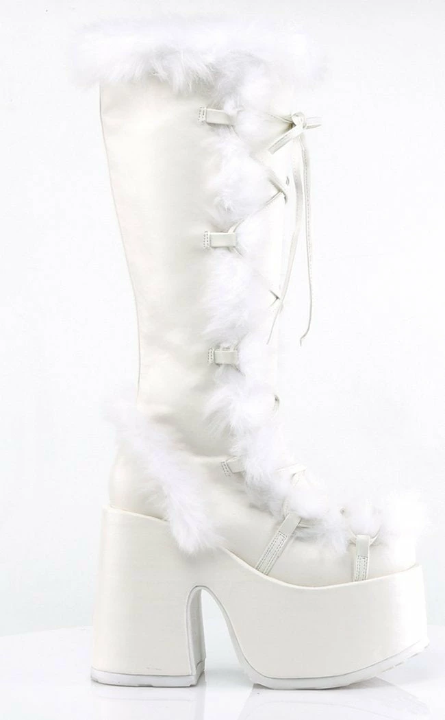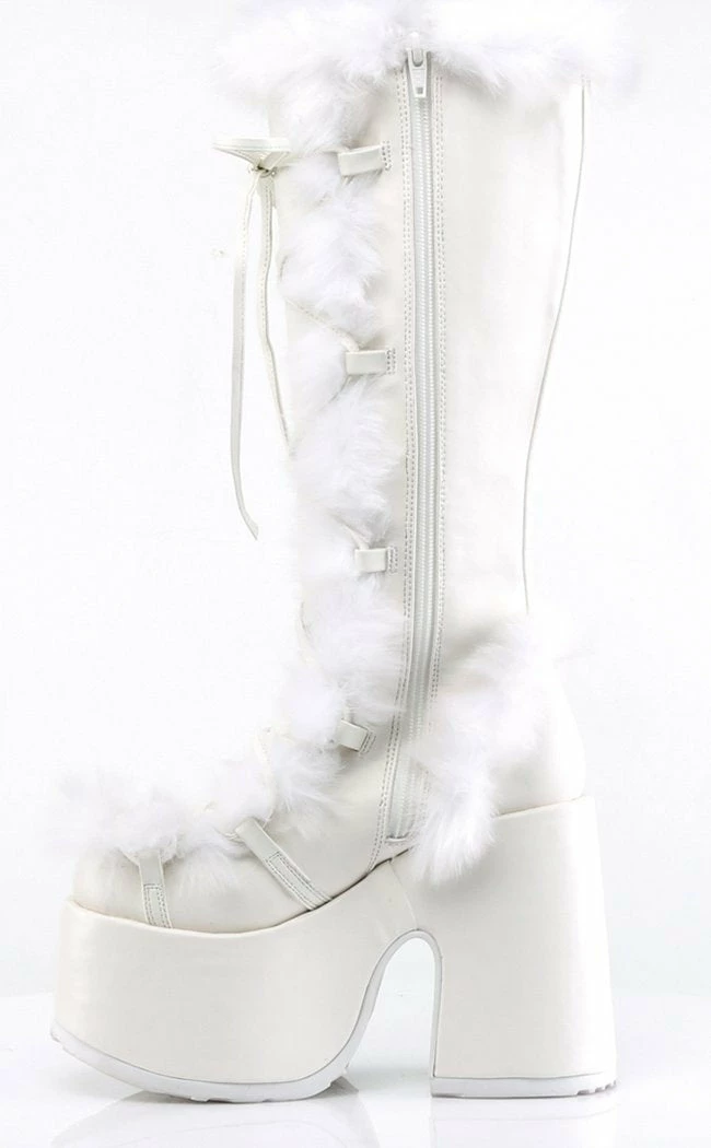 - White faux fur/suede