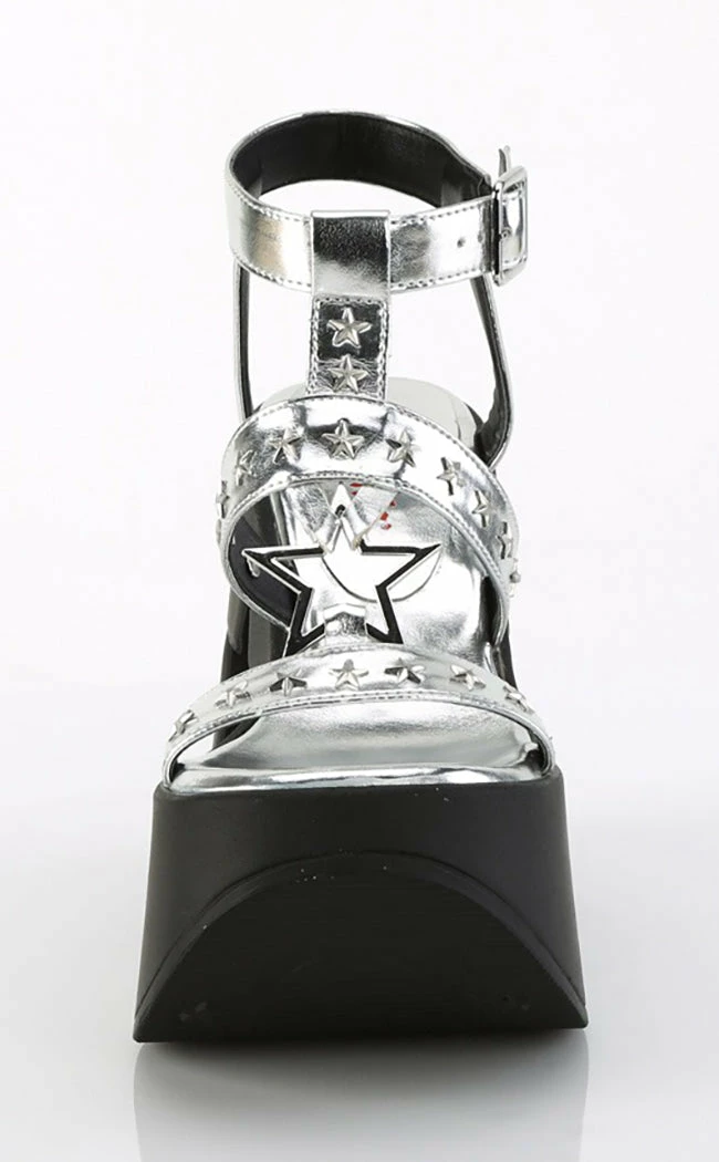 Be the star this summer in the DYNAMITE-12 sandals! These wedges are a strappy style sandal with a metal star cutout charm and matching star-shaped studs on the straps. The shoes secure with an adjustable ankle strap. Dress up n down for going out or casual summergoth looks!