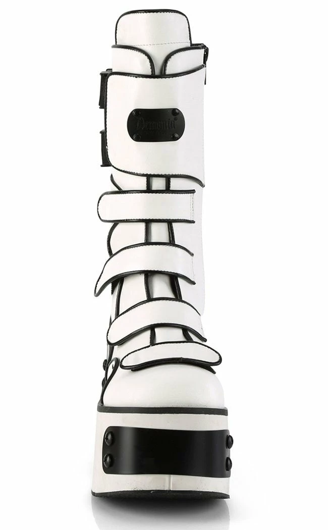 Get your futuristic stomp on with the KERA-108 boots!Β These impressive wedges feature a comfortable platform, plenty of straps and badass metal plates with industrial screws.