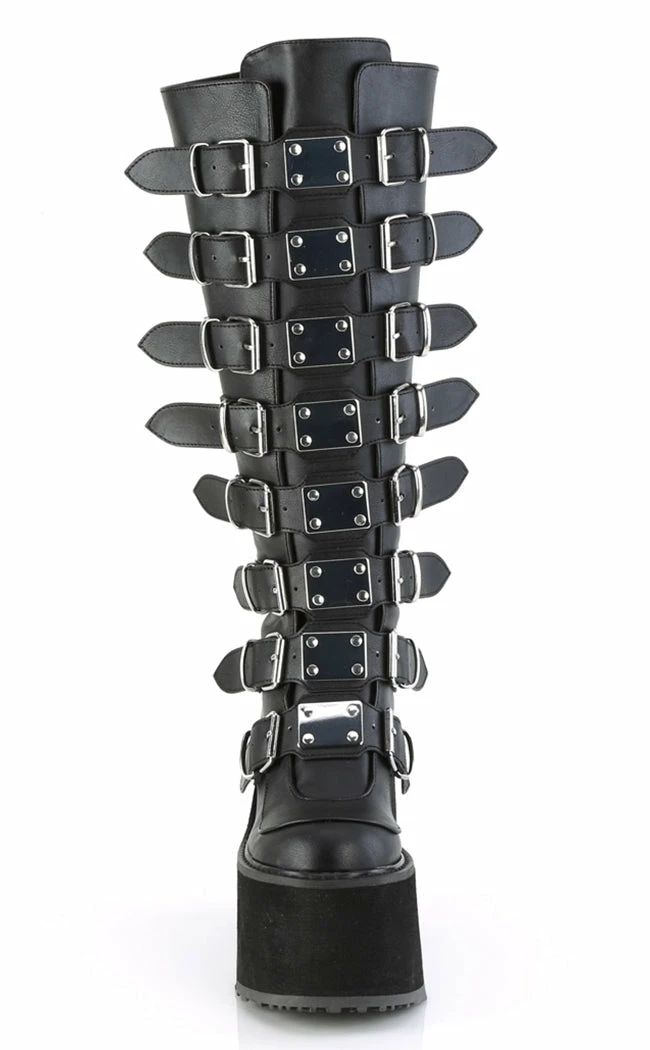 Swing your way into the club with this series of platform wedged boots and shoes, with buckles and straps and decals galore!