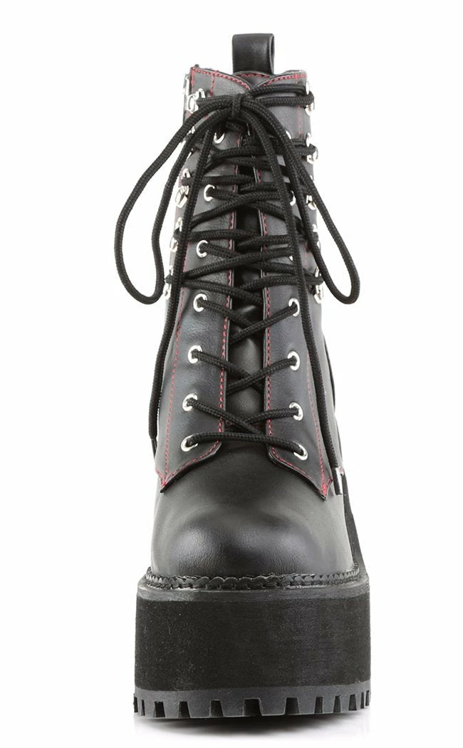 With red stitching and D Ring lace ups, these boots are a great addition to your everyday wardrobe.Β The side zipper makes for easy putting on and taking off.