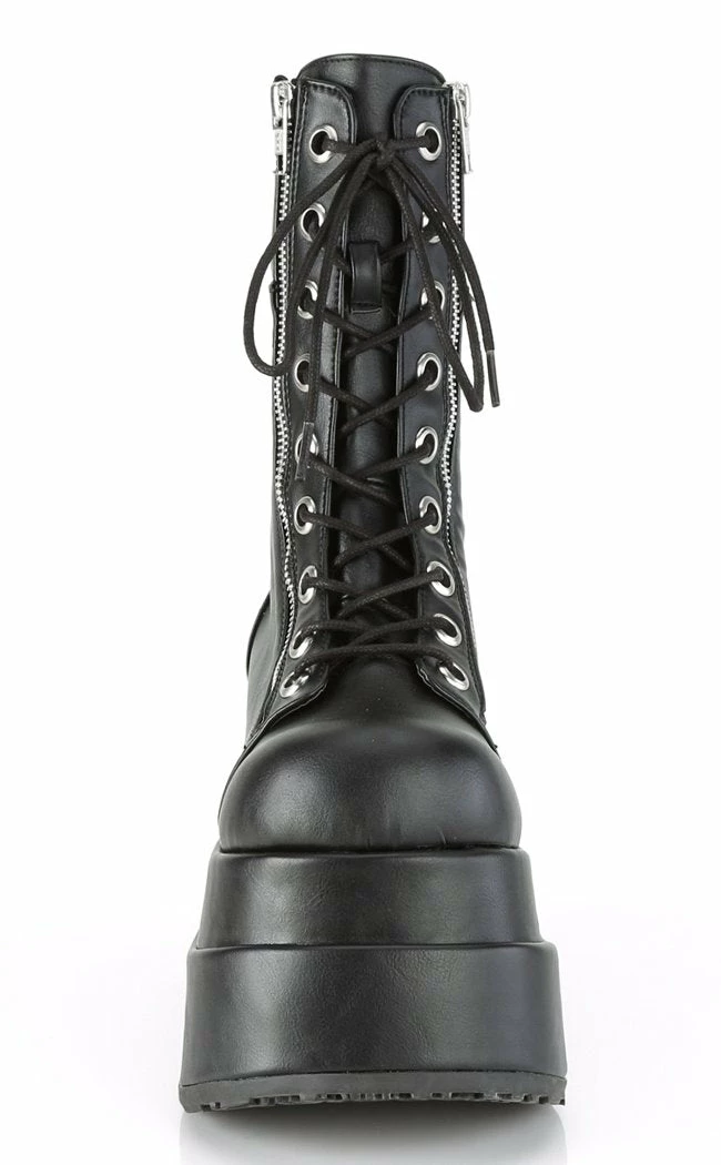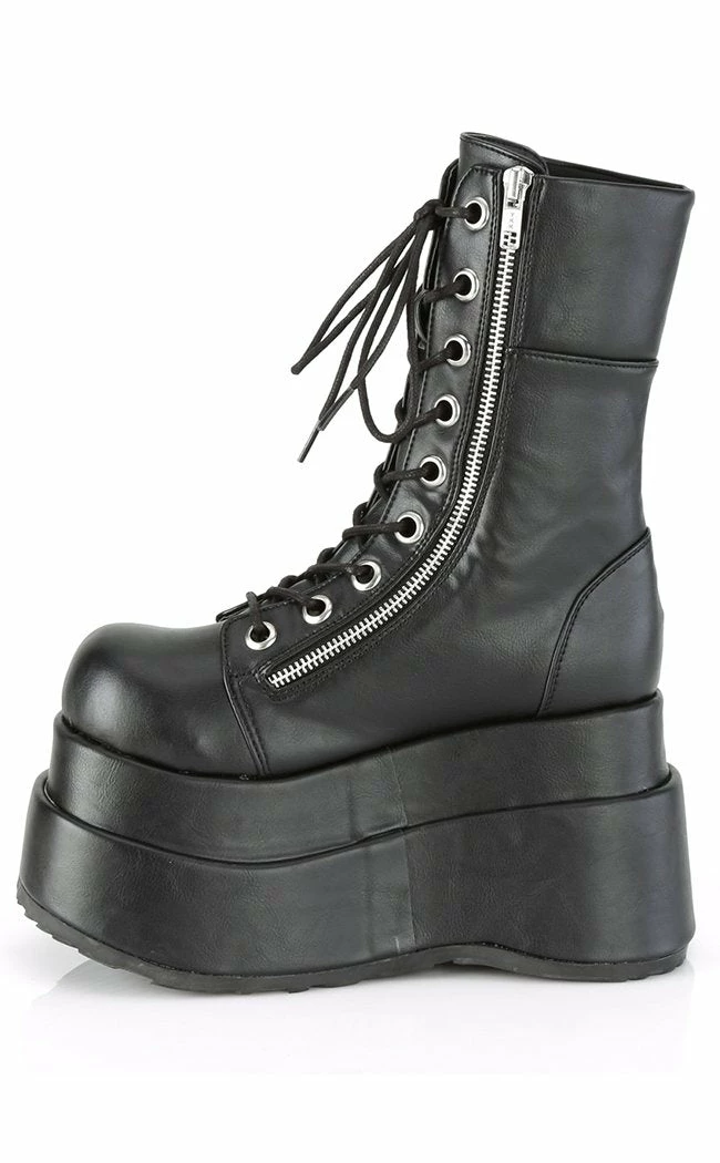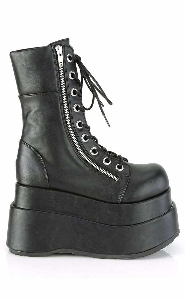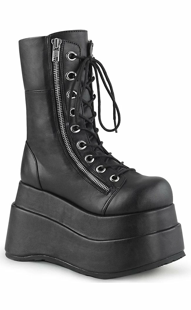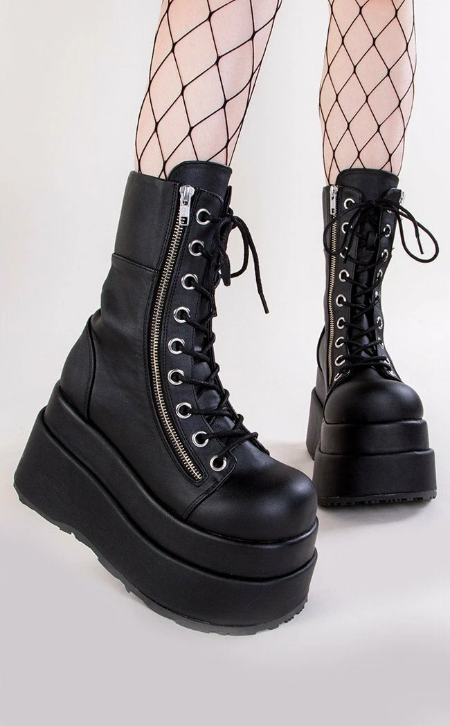 TheseΒ mid-calf platform boots featureΒ a chunkyΒ platform sole and inner and outer zip closure.