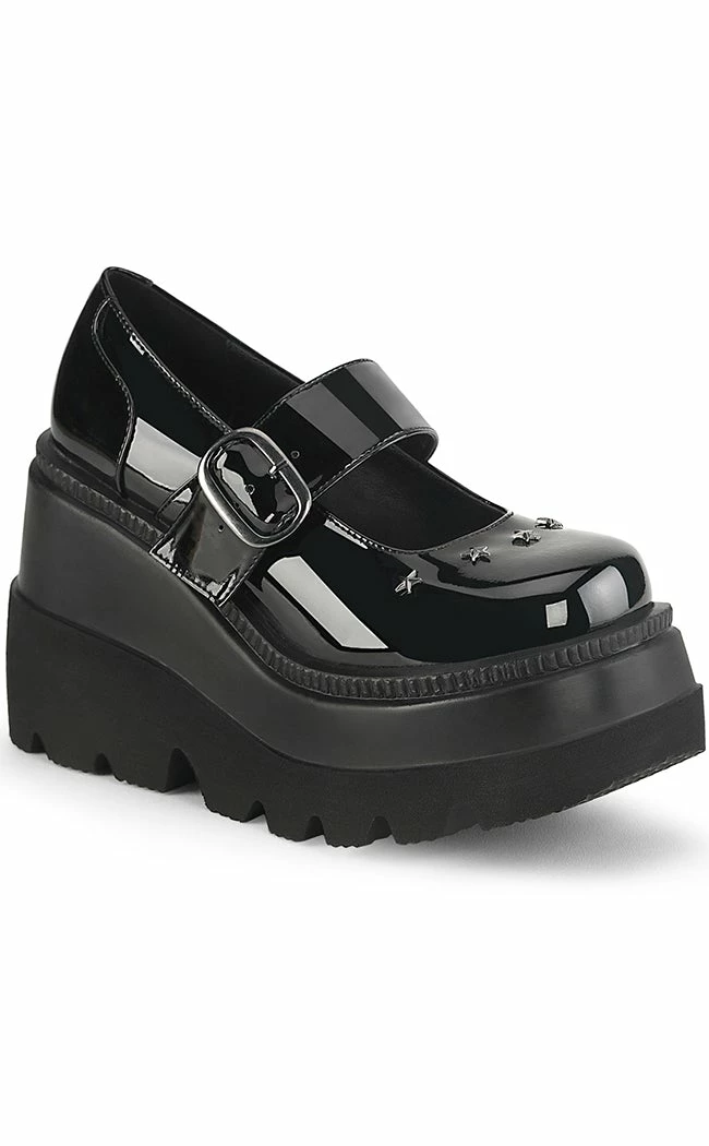 Shake it up with these glammed up wedges!Β The SHAKER-23 wedges are a unique Mary Jane that feature the signature shaker platform, decked out with silver star studs on the vamp.Β Perfect for pairing with yer face stockings and socks!
