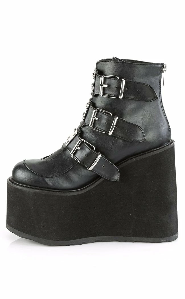 Swing your way into the club with this series of platform wedged boots and shoes, with buckles and straps and decals galore!