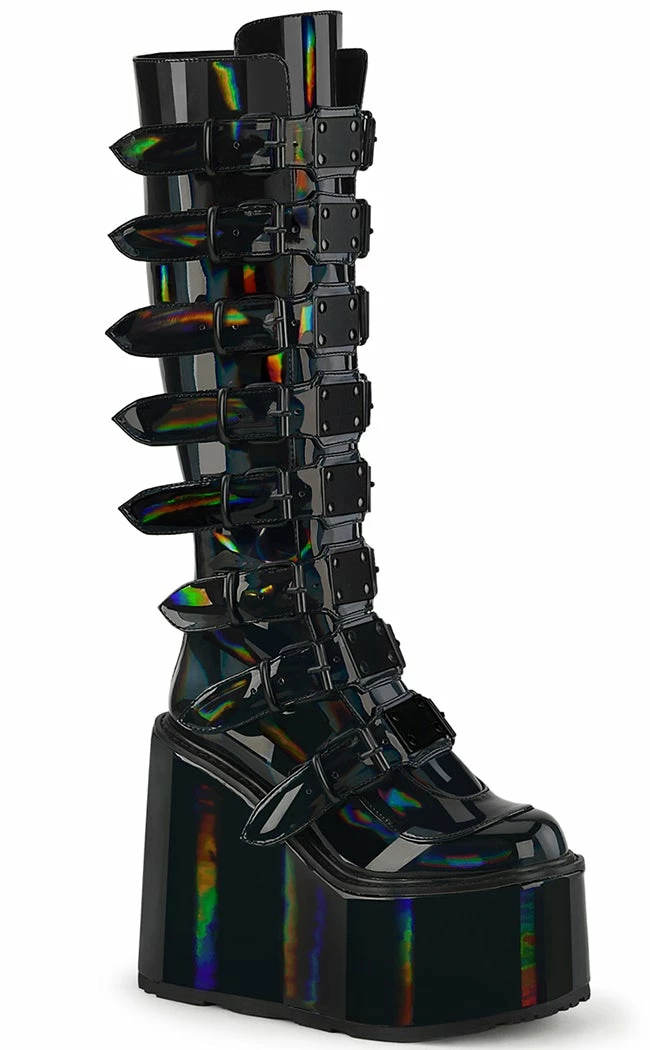 The Tragic fave SWING-815s are back with a brand new look!Β AΒ shiningΒ black holoΒ upper is covered in buckles, decked out in black hardware for aΒ hot n bright lookΒ for cyber aliens.