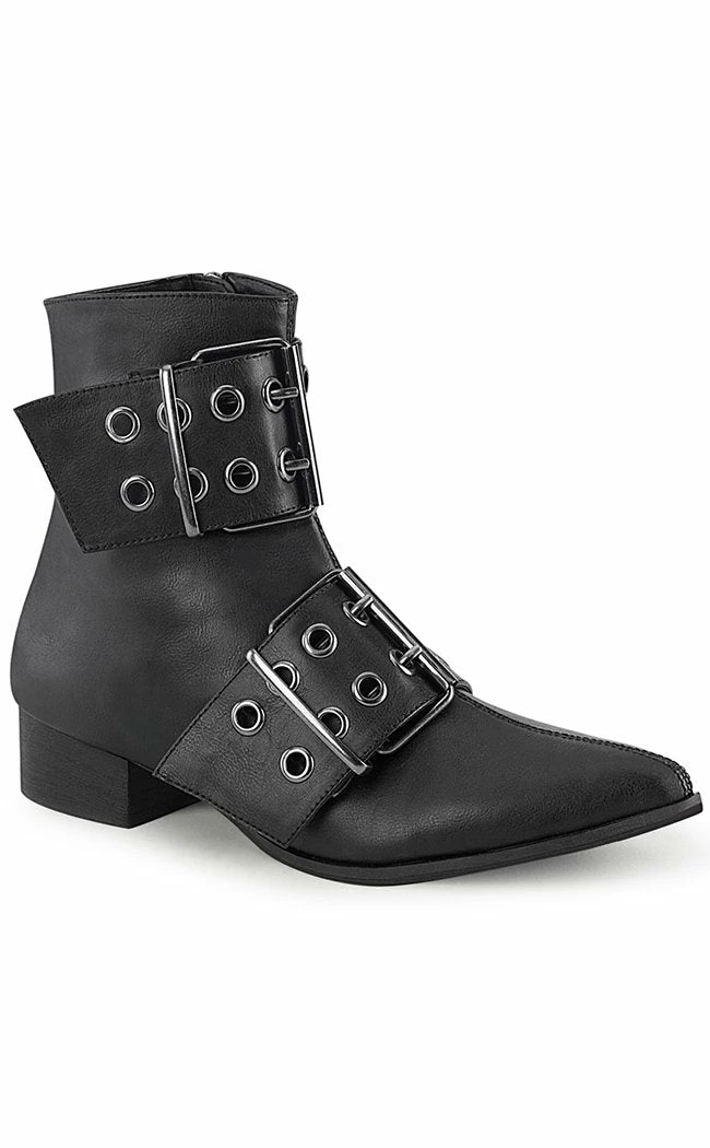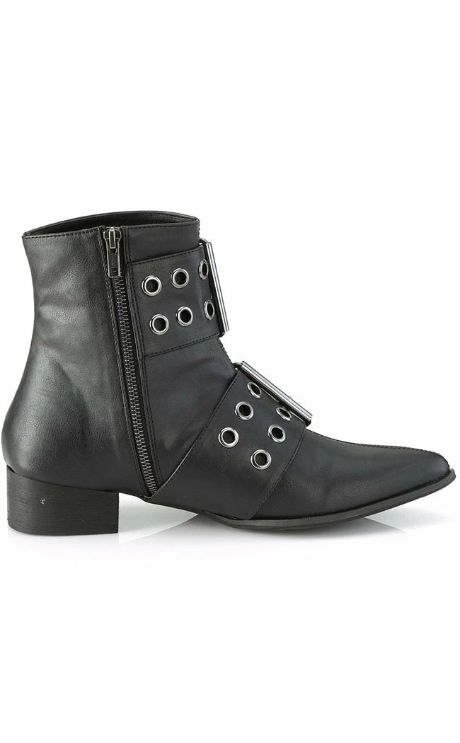 Put some magic in your step!Β The WARLOCK-55 boots are your classic winklepickers maxed out with two thick eyeleted straps.Β The bootsΒ close with a side zip for easy on/off.