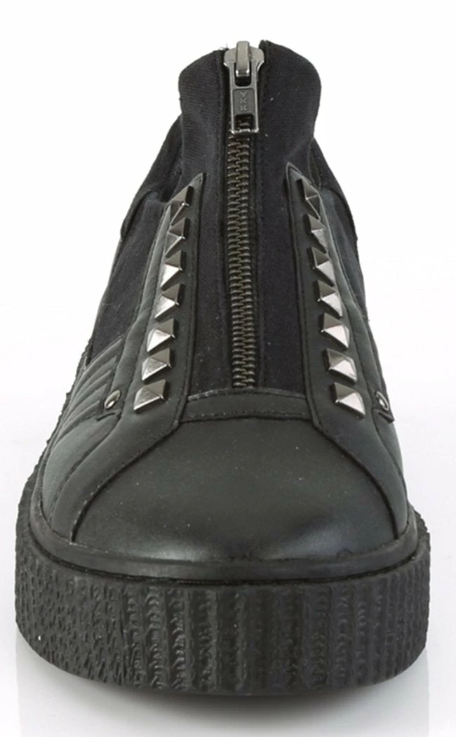 Half skate shoe, half wicked creeper. Demonia Sneekers are a comfy shoe with an edge.