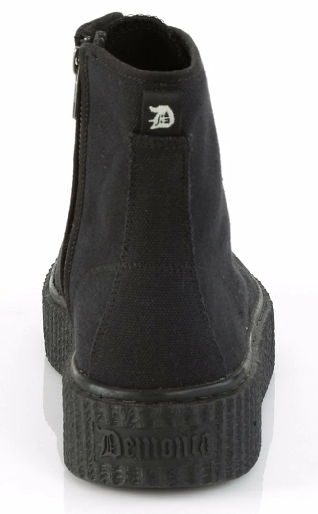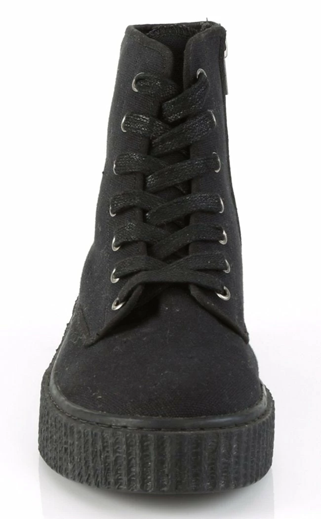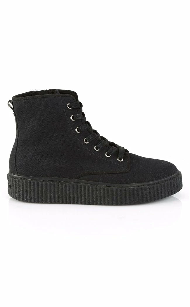 Half skate shoe, half wicked creeper. Demonia Sneekers are a comfy shoe with an edge.