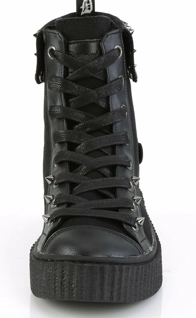 Half skate shoe, half wicked creeper. Demonia Sneekers are a comfy shoe with an edge.