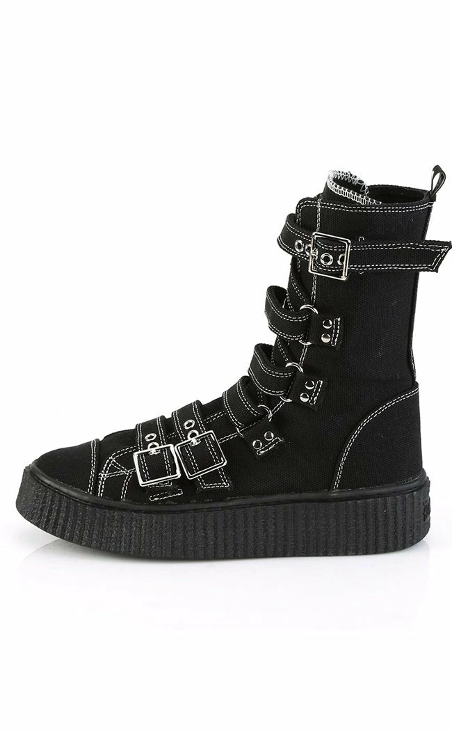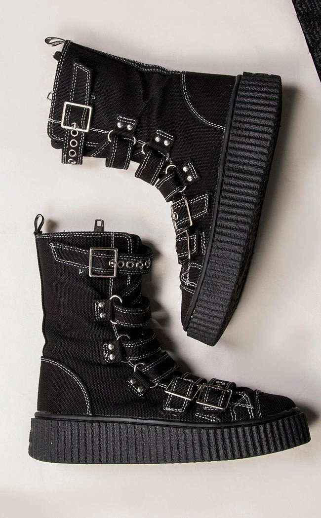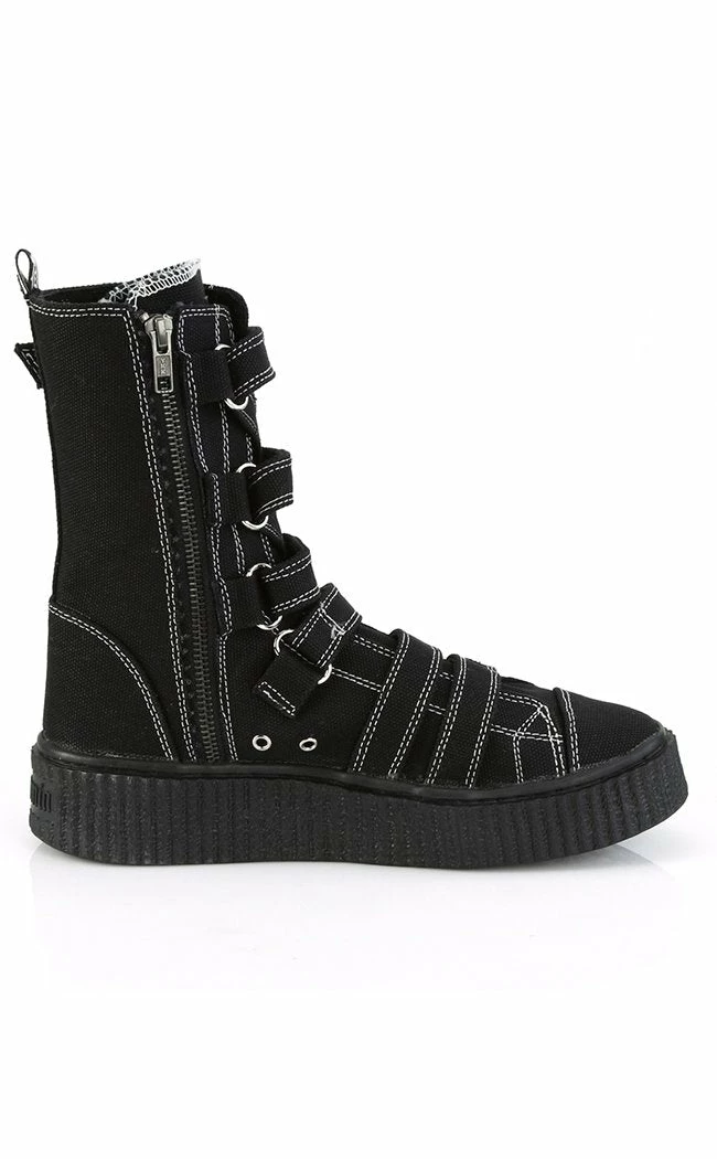 Half skate shoe, half wicked creeper. Demonia Sneekers are a comfy shoe with an edge.