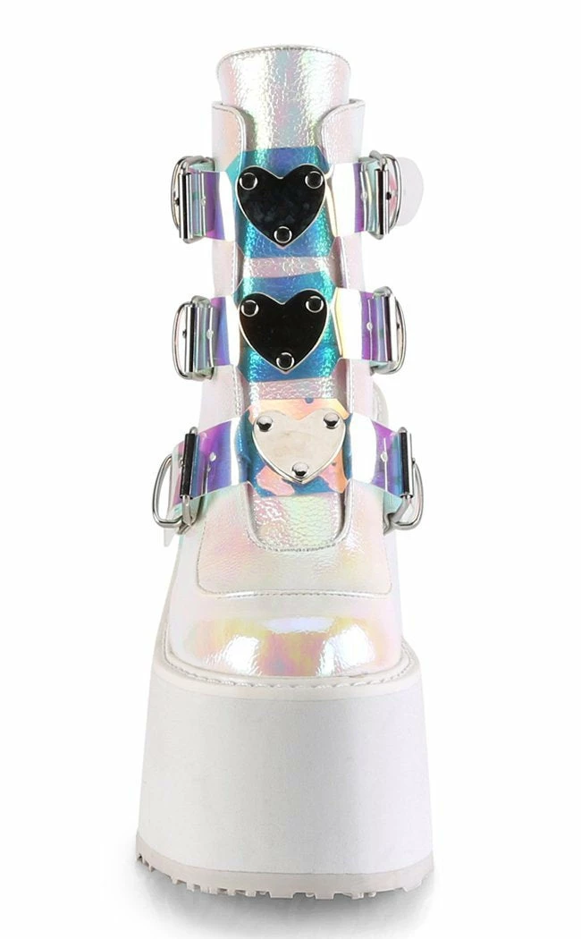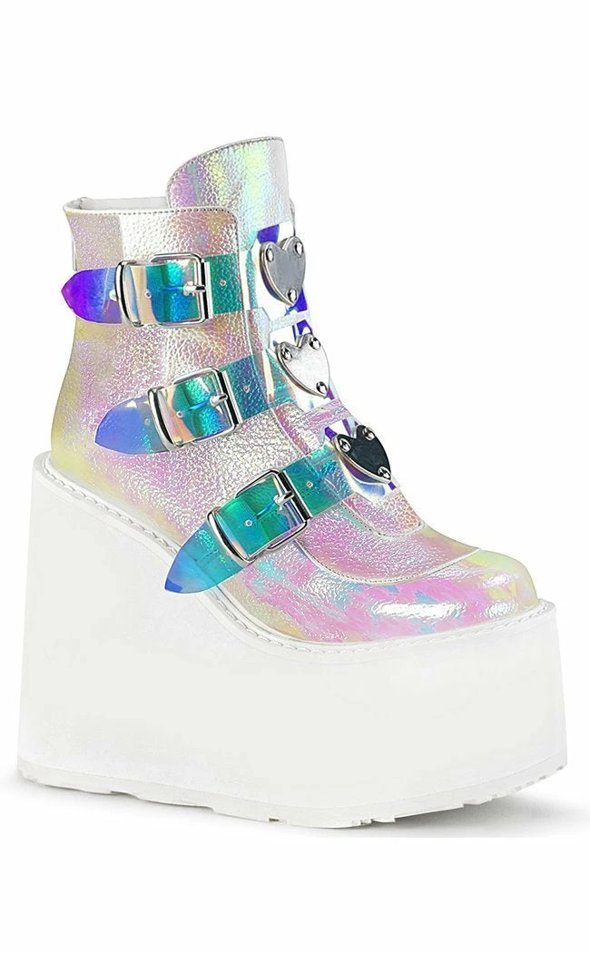 Swing your way into the club with this series of platform wedged boots and shoes, with buckles and straps and decals galore!
