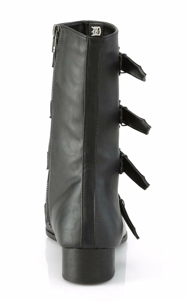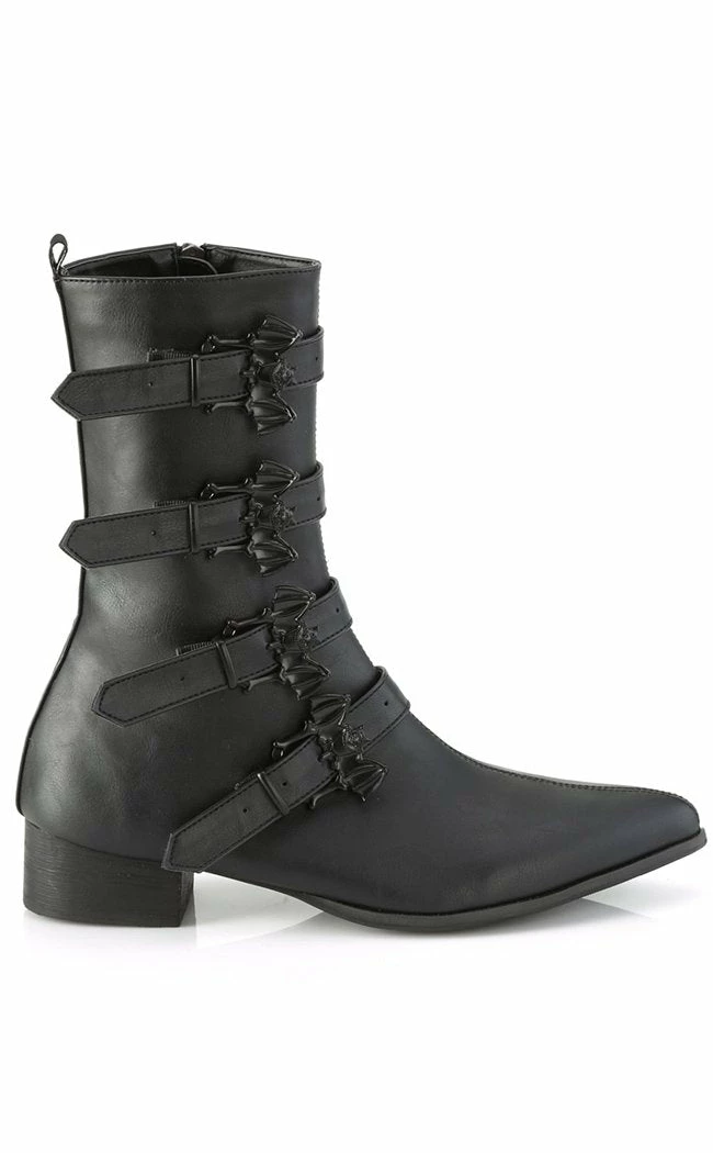 Put some magic in your step!Β The WARLOCK-110-B boots are your classic winklepickers with a twist: the straps secure with spooky bat buckles for an extra touch of gothic charm.Β The boots close with a side zip for easy on/off.