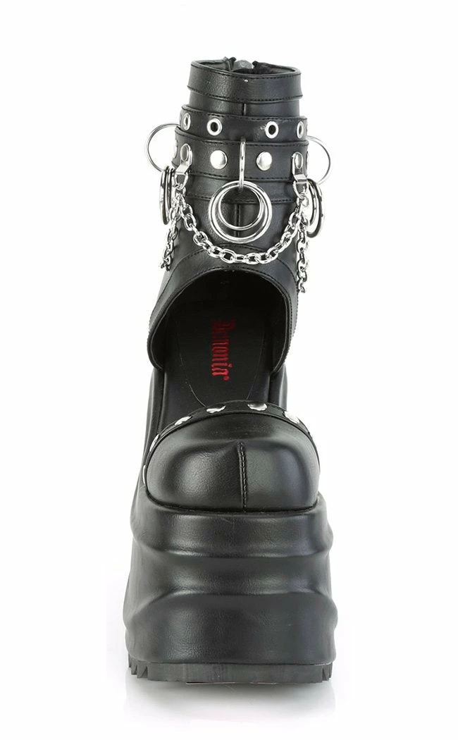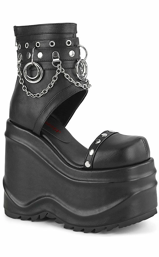 Studs and chains for heavy metal darklings!Β These platform wedge sandals are covered in studs, chains and O rings so you can stay meta AF even in the summer!