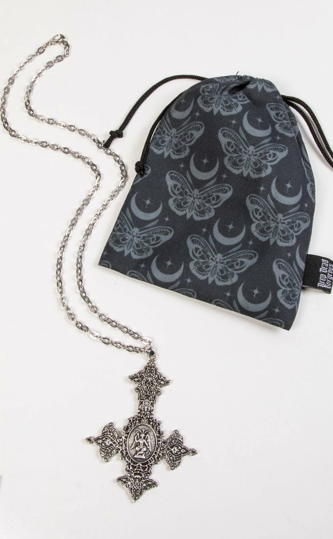 Packaged in an occult drawstring bag, this necklace can be worn alone as a statement or layered with chokers for a dark priestess look.