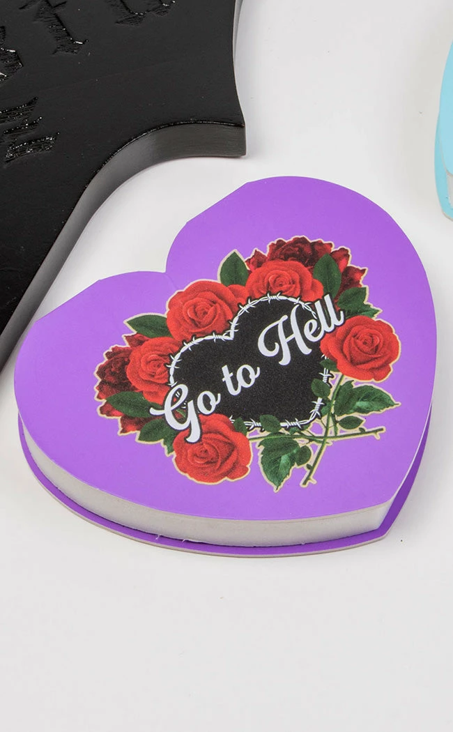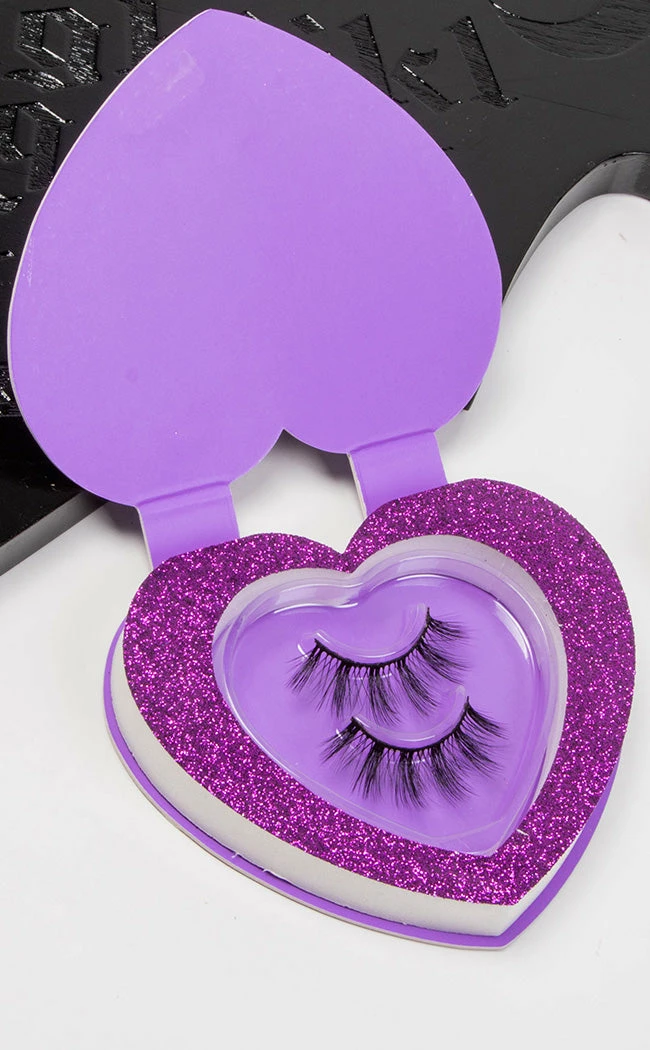 These lashes come in a glittery heart-shaped box with the words “Go To Hell” sitting among roses on the lid. Perfect for displaying on your dresser when not in use and warning unwelcome snoopers to stay tf away!