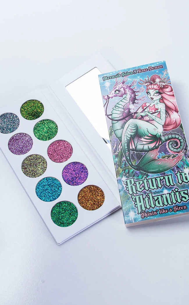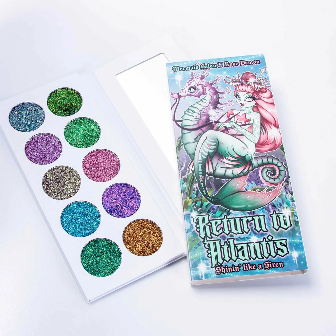 Let your mermaid scales glitter and shine with the Return To Atlantis Multi Chrome Palette! This oceanic bible contains 10 shimmering shades from across the glitter rainbow, so you can add a dab of shimmer to yer eyelids or go wild with full face shimmer!