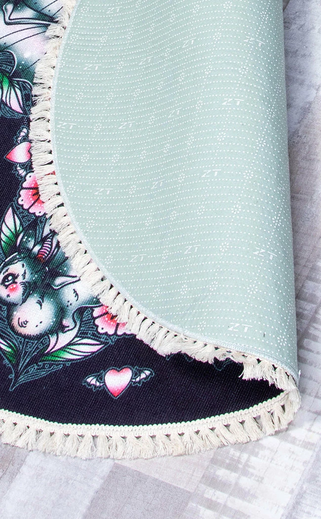 Release the bats in your boudoir with the Night Vision Fringed Rug! This gorgeous round rug features a pastel pattern of flying bats, all trimmed with a fluffy fringe. With non-slip backing, lay this on any kind of flooring in your bedroom, lounge or hall!