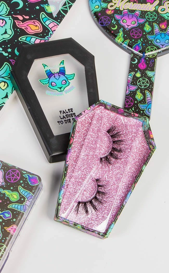 These lashes come in a unique coffin-shaped box with neon demonic artwork that’ll look fantastic on any evil vanity.