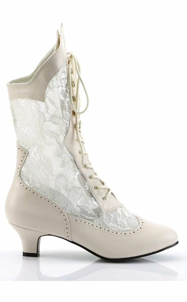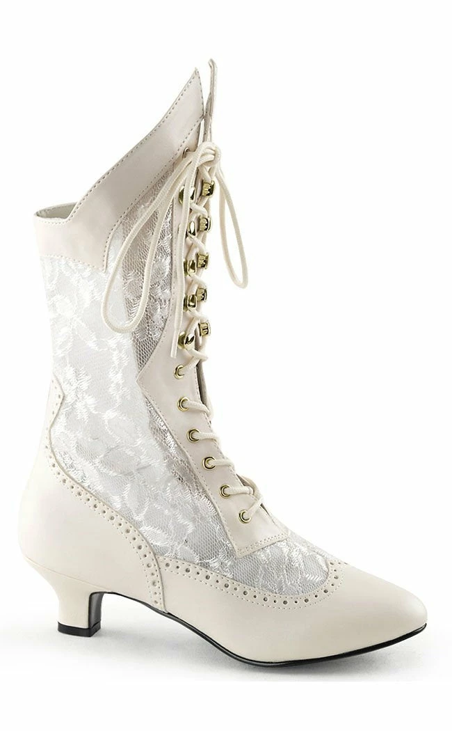 2″ Heel, Ivory Pu-Lace Victorian Ankle Boot, Lace, Pioneer
