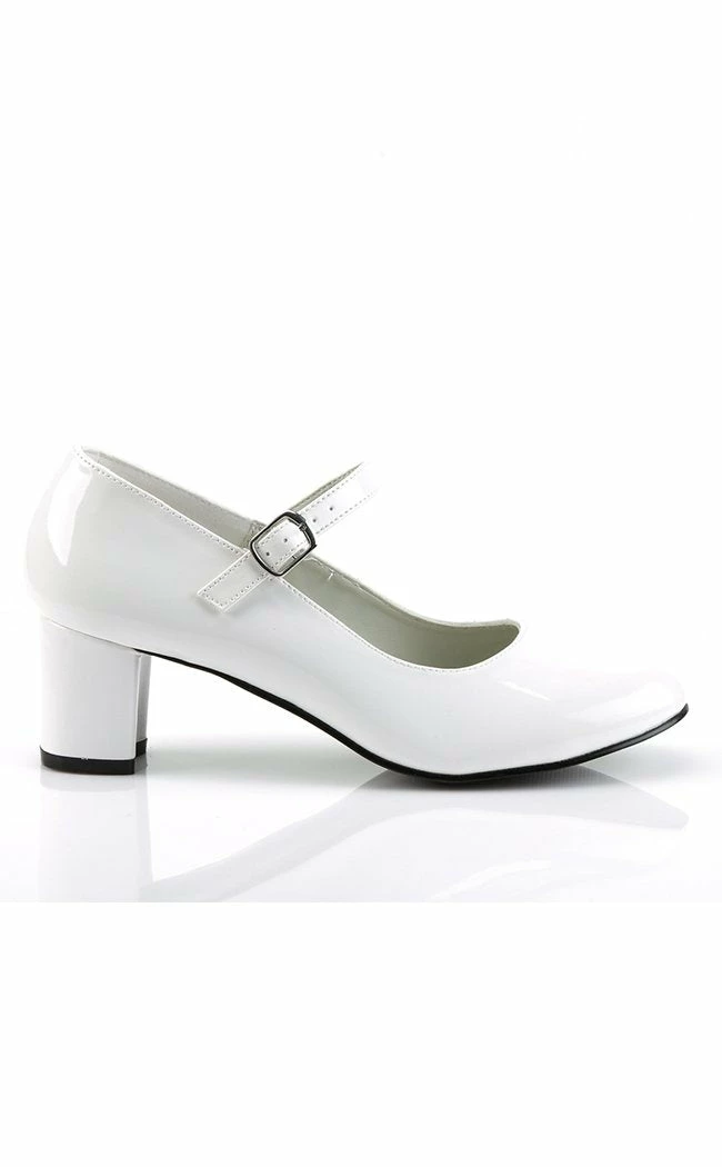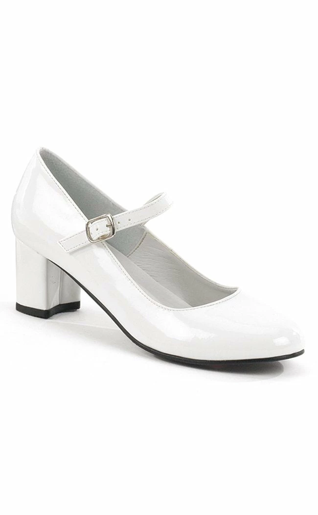 2″ Heel White Plain Pat Mary Jane School Girl Shoe, Retro