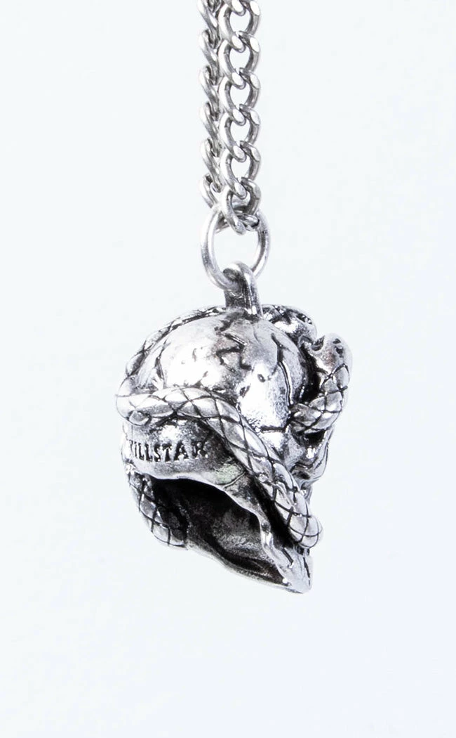 Accessorise like a goddess in the Spiritual Entities Necklace! A large skull and serpent pendant sits on a matching silver-look chain, the perfect accessory for pairing with low necklines and dark intentions.