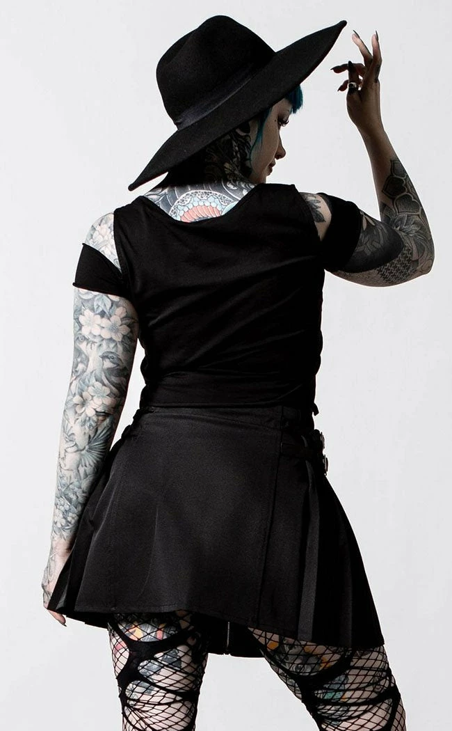The Armageddon Crop Top is the perfect blend of retro chic and summergoth flair! Super soft stretch fabric drapes yer bod in a flattering fit, featuring cutout shoulders and a lace-up neckline.Β