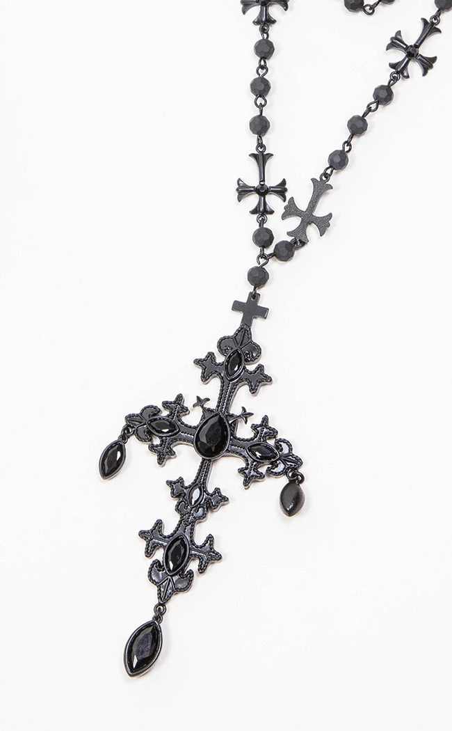 Bring out yer nosferatu chic with the Summon The Night Choker! A soft, adjustable choker ban holds layers of rosary beads, cascading down your chest toΒ show off theΒ elegant cross pendant.