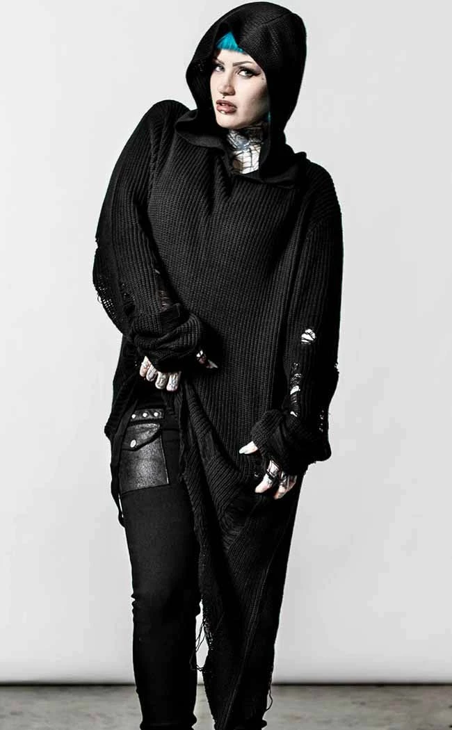 Shock ’em into place with the Blitzed Hooded Sweater! This cosy knit is a super versatile piece, featuring an oversized hood, distressed deets and a relaxed fit. Wear long as an asymmetrical tunic or tuck into jeans for the ultimate in IDGAF chic.