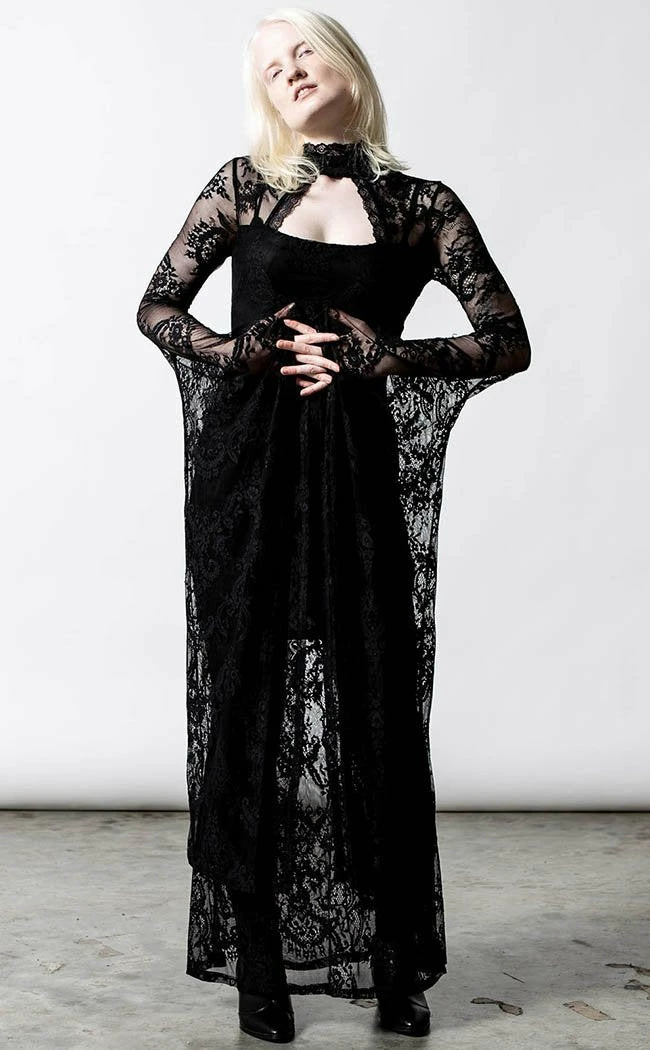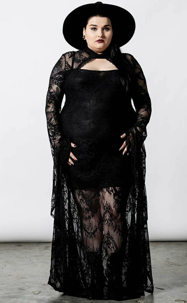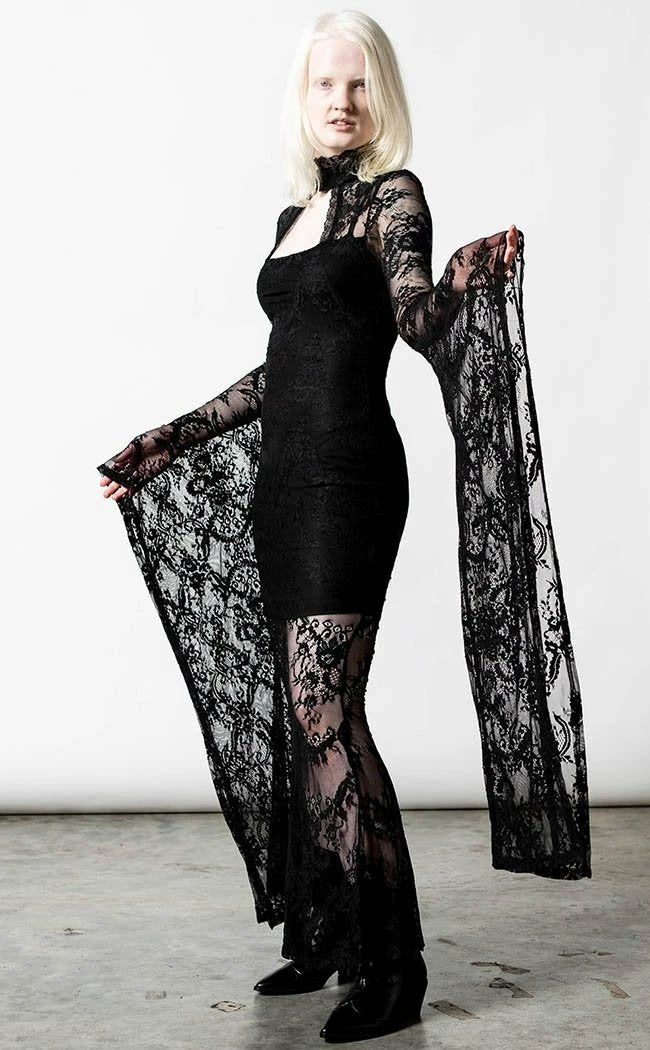 There’s no such thing as too much lace!Β The Phenomena Lace Maxi features a high collar with a keyhole neck, leading to a fitted body that hugs all yer curves. The lace sleeves drape down in a dramatic waterfall to match the layered skirt.