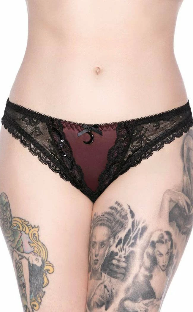 Dress for yourself in this luxurious lace piece!Β A crescent moon charm hangs from the waist, surrounded by delicate lacy trims accented by sequins.Β
